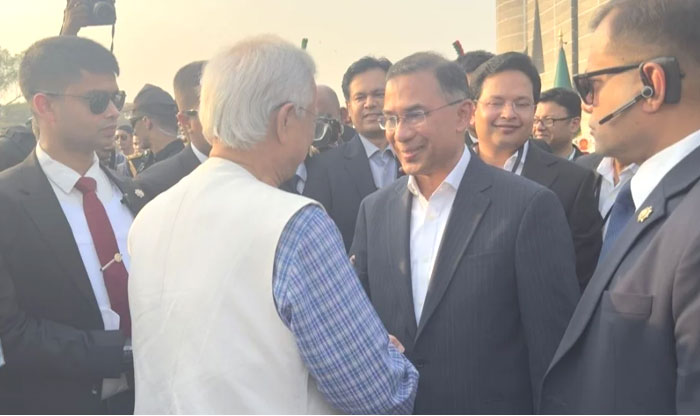 প্রধানমন্ত্রী হিসেবে শপথ গ্রহণের পর তারেক রহমান-এর সঙ্গে শুভেচ্ছা বিনিময় করেছেন বিদায়ী অন্তর্বর্তী সরকারের প্রধান উপদেষ্টা ড. মুহাম্মদ ইউনূস।